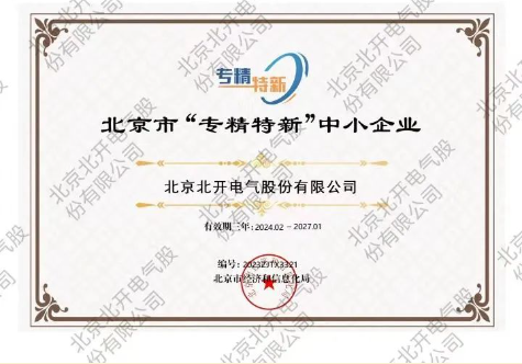 報(bào)佳音,傳喜訊。經(jīng)北京市經(jīng)濟(jì)和信息化局認(rèn)定,北京北開電氣股份有限公司順利通過(guò)“北京市專精特新中小企業(yè)”、“北京市創(chuàng)新型中小企業(yè)”認(rèn)定。